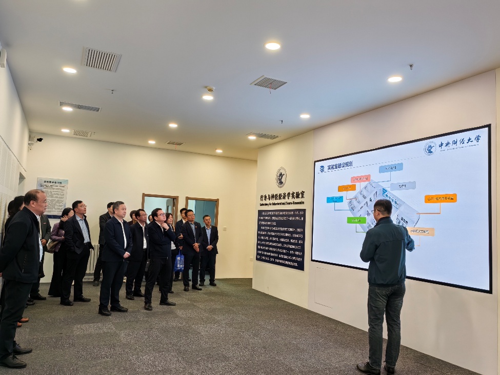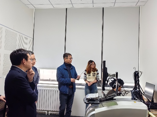 随后,山东财经大学一行重点观摩了正在开展实验的近红外脑功能成像实验室与虚拟现实实验室。张红川副院长就近红外设备的原理与功能、虚拟现实技术在经济学研究中的具体应用等问题,与来宾进行了交流与解答。在李国武院长与张红川副院长的引导下,来宾还参观了脑电实验室、行为观察与生理记录实验室、眼动实验室、脑功能调控实验室。