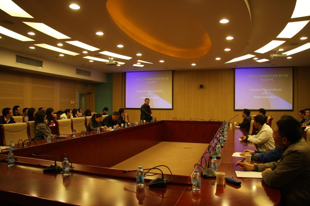 张翼教授从人口结构、城乡结构和阶级阶层结构三个方面分析了当前我国社会结构转型现状,并就其中可能出现的社会冲突提出了自己独到的见解。在本次讲座中,最引人注目的当属张翼教授对我国中产阶层的分析。他认为,随着我国社会经济的发展,我国中产阶层将日益壮大,最终将占我国人口数的三分之一,与工人阶层、农民阶层并称为我国的三大主要阶层。虽然中产阶层占多数的社会具有稳定性,但中产阶层壮大的过程,正是社会矛盾日益增多、社会冲突日益剧烈的过程,因此我们应全面认识中产阶层在社会中的作用,了解中产阶层、考虑中产阶层的诉求,及时防范社会动乱的发生。