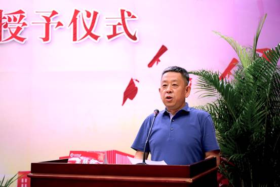 家长代表2017级应用心理专业硕士毕业生董之涵的父亲董小彦先生代表全体家长发言。他从家长的角度出发,讲述了孩子进入研究生阶段后学术素养的建立与强化以及学术能力的塑造和提升,表达了对学院和老师的感谢以及对学校的美好祝愿。